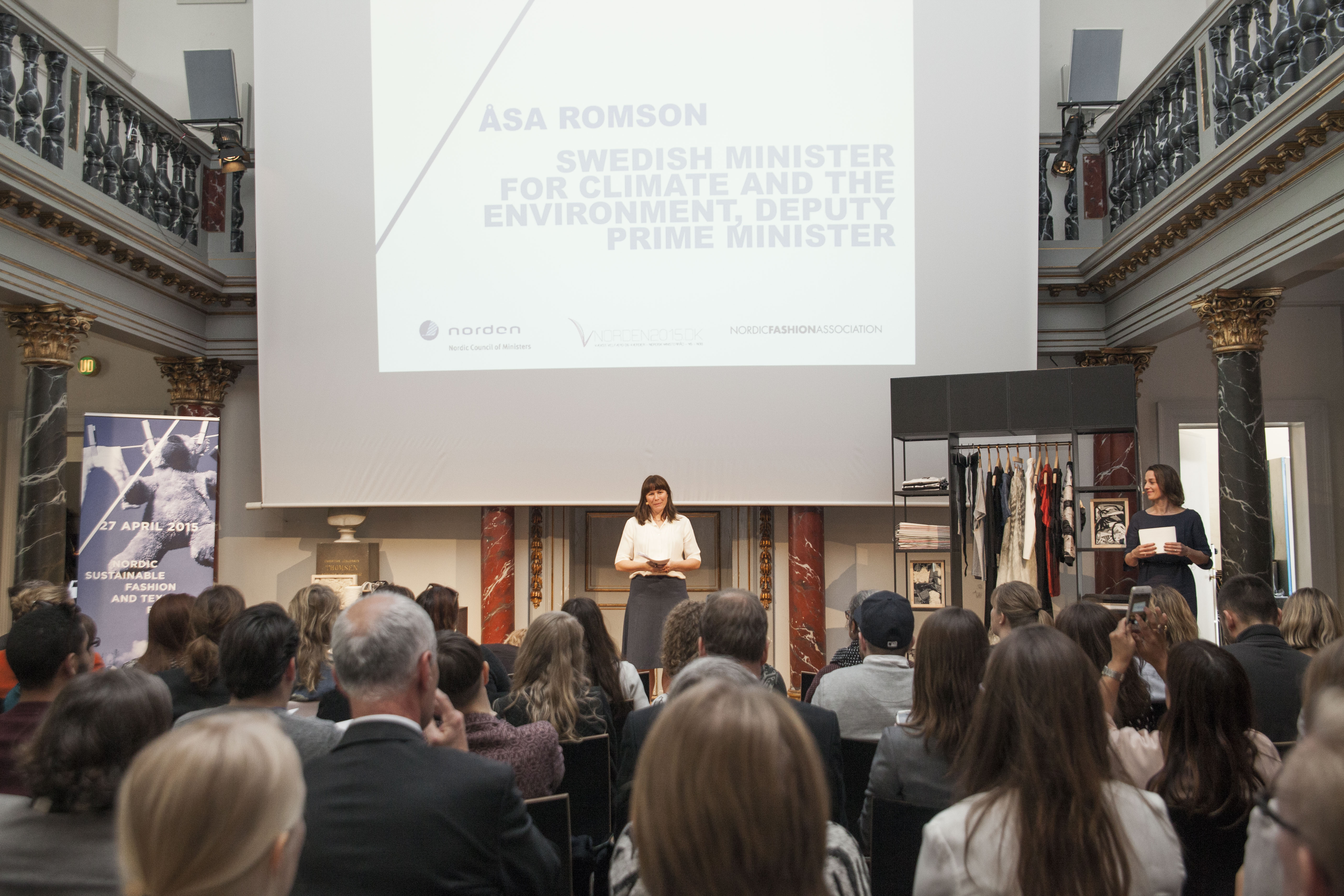 Kirsten Brosbøl, de Deense minister van Milieu en Åsa Romson, de Zweedse minister van Klimaat en Milieu presenteerden op 27 april hun ideeën onder de naam ‘The Nordic Region – Weldressed in a Clean Environment’. (De bijeenkomst is hier terug te zien). Brosbøl verklaart: “We don’t have to dress down to have a clean environment.” Tijdens de bijeenkomst wordt al snel duidelijk dat de Deense minister groot vertrouwen heeft in de door haar genoemde ‘groene make-over van de kledingindustrie’. “Ik geloof dat Scandinavië potentie heeft een leider te worden op het gebied van duurzaam design, consumptie en productie.”