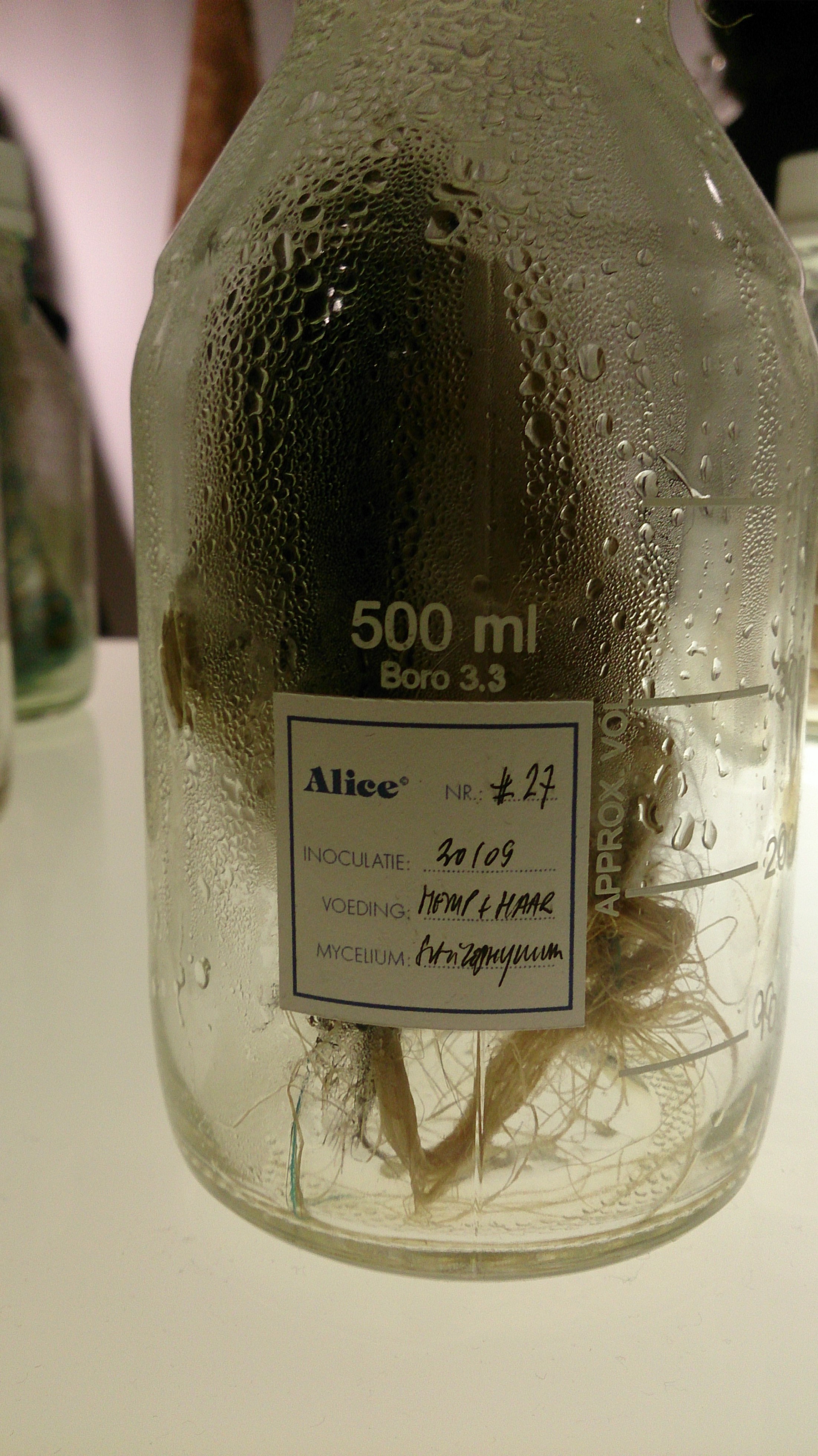 ‘Alice wants to reduce the environmental impact of shoe design to zero’. Dat is de zin waarmee schoenontwerpster Kristel Peters haar project ‘Rethinking High fashion Shoes‘ inleidt. Alice is een modulair schoendesign gemaakt met ‘additive manufacturing’, oftewel 3D-printing. Peters onderzoekt hiermee de mogelijkheden van ‘biobased materials’ in combinatie met nieuwe technologieën om zo tot een duurzame schoen te komen. “Tot nu toe heb ik geëxperimenteerd met verschillende materialen zoals hennep en rode biet, zo vertelt Peters. “Uiteindelijk bepalen de levende organismen in de potjes hoe het ontwerp er uiteindelijk uitziet.”