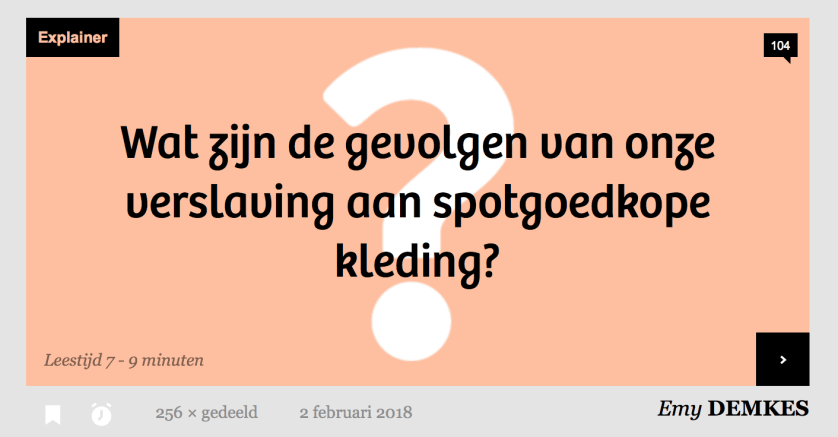 Jaarlijks worden er meer dan 100 miljard kledingstukken geproduceerd. En over wat daar allemaal mis bij gaat, en wat jij daaraan kunt doen, hield ik dit verhaal. Bekijk hier de video.