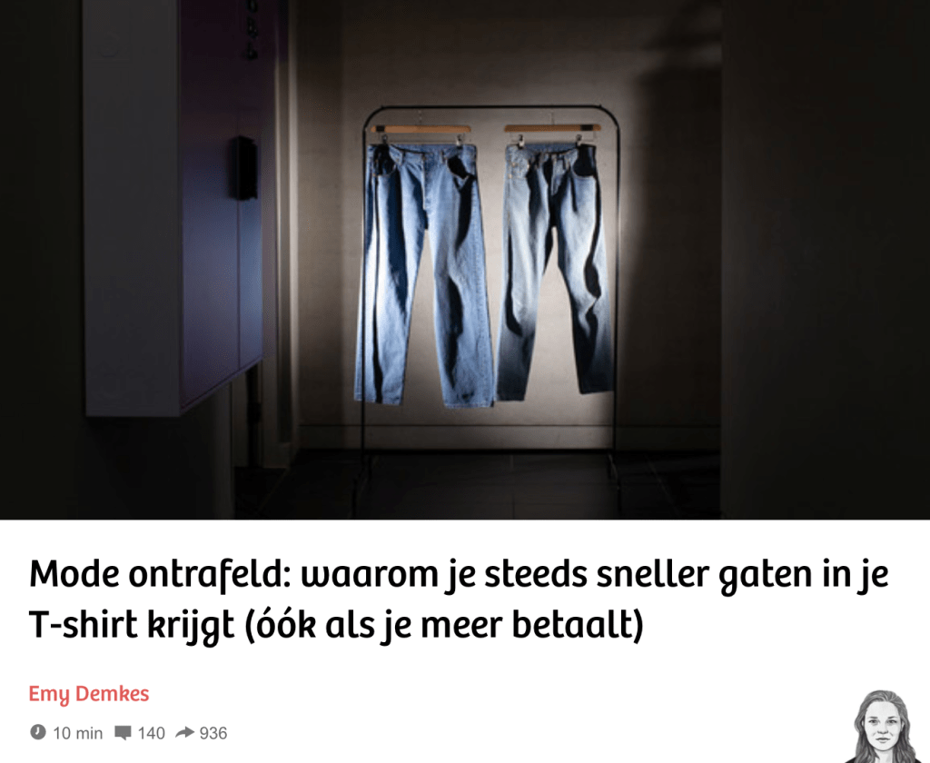 Zoals je misschien wel hebt gemerkt is het al een tijdje stil op mijn blog… Niet omdat ik gestopt ben met schrijven, maar omdat mijn stukken nu verschijnen op De Correspondent. Wil je mijn verhalen blijven lezen, dan kun je lid worden (mocht je dat nog niet zijn) voor een klein bedrag per maand. Wil je weten waar ik zoal mee bezig ben en vind je het leuk op de hoogte gehouden worden van interessante ontwikkelingen binnen de kledingindustrie? Dan kan je je abonneren (gratis) op mijn nieuwsbrief, die ik eens in de twee weken schrijf en verstuur. En via Twitter en Instagram kan je mij ook blijven volgen.