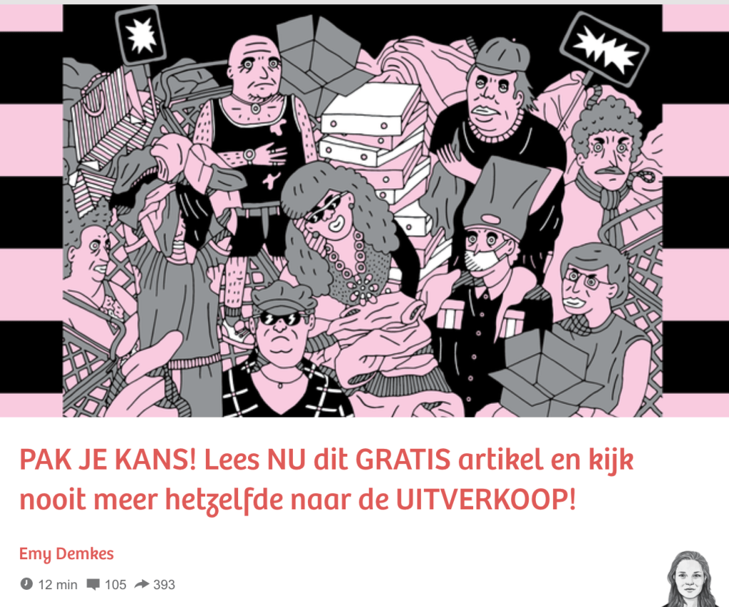Het is 365 dagen per jaar sale. Zowel online als offline word je met hijgerige en ophitsende aanbiedingen om de oren geslagen. Wat zijn de gevolgen van deze permanente stortvloed aan korting? Lees hier verder.