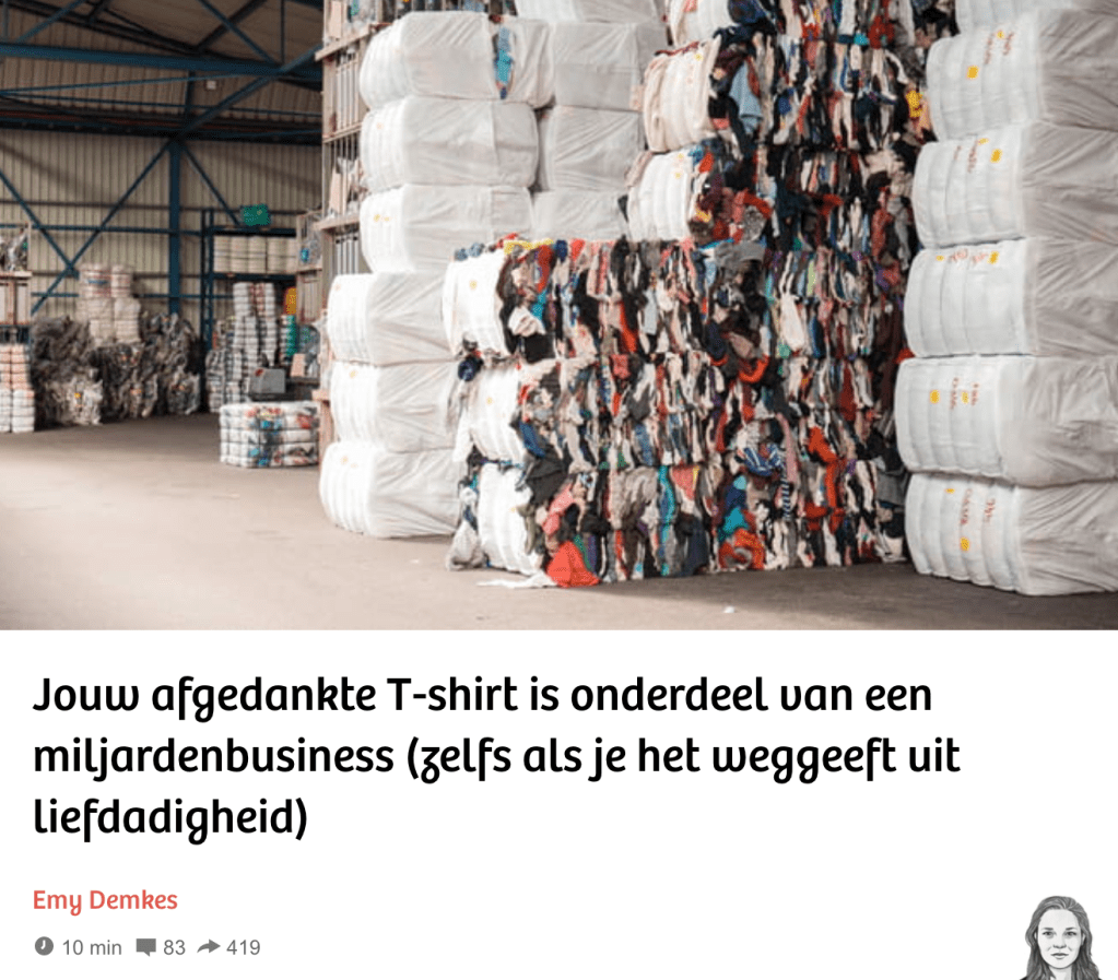 Je oude jurk of vest in een kledingbak gooien: velen doen dat vanuit de gedachte dat de kleding naar iemand gaat die haar hard nodig heeft. Maar de handel in tweedehands textiel is meer een miljardenbusiness dan liefdadigheid. En Nederland bevindt zich als een spin in dat wereldwijde handelsweb. Lees hier verder.