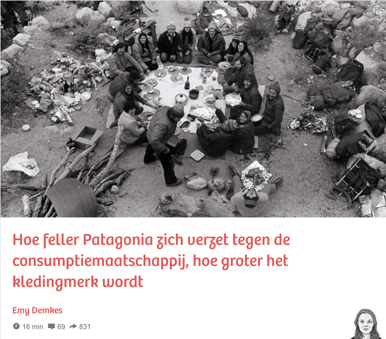 Outdoormerk Patagonia verkoopt jaarlijks voor honderden miljoenen aan kleding, maar is ook fel tégen de consumptiemaatschappij en heeft als missie ‘het redden van de planeet’. Milieuactivisme, commercieel succes en onvermijdelijke ecologische impact gaan er hand in hand. ‘Er is een verschil tussen goede groei en slechte groei.’ Lees hier verder.